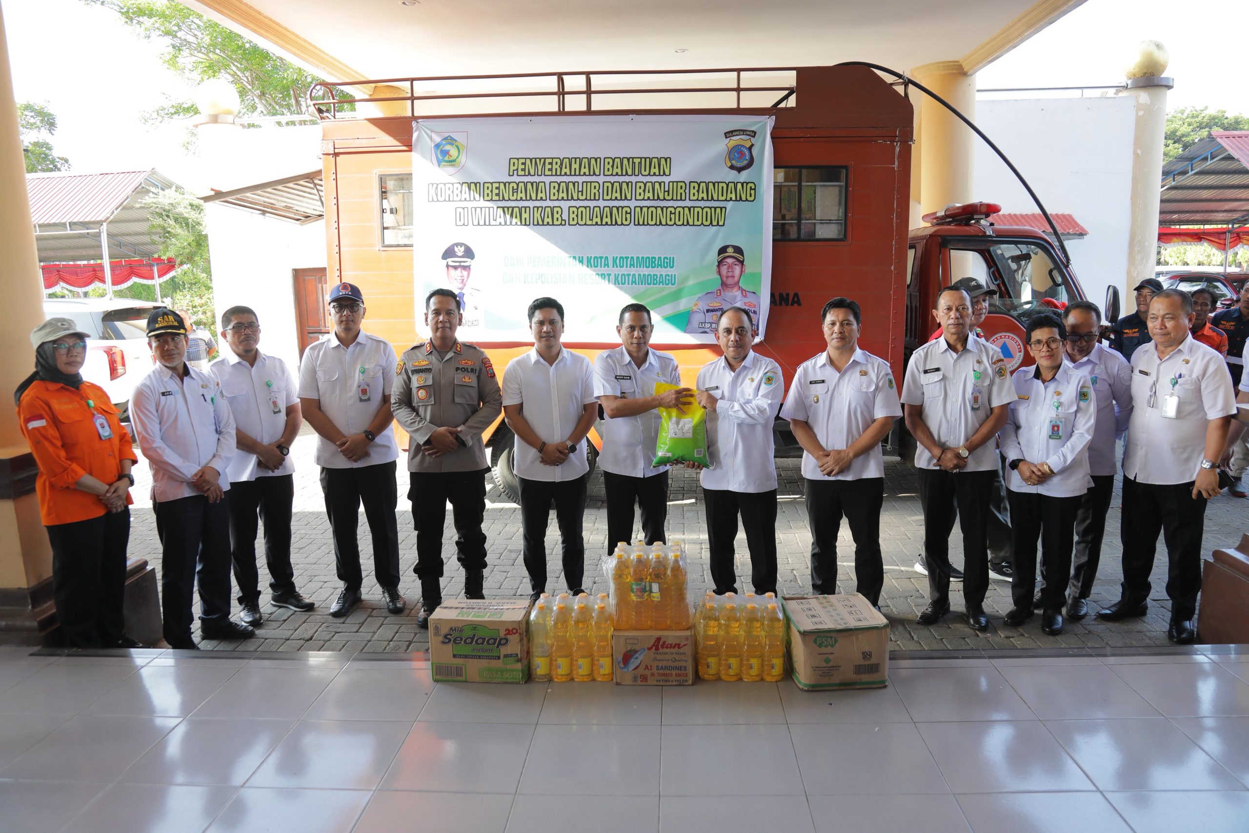 Kehadiran rombongan Pemerintah Kota Kotamobagu dan Polres Kotamobagu ini menjadi bentuk kepedulian terhadap masyarakat yang tengah menghadapi musibah banjir. Bantuan diserahkan secara simbolis kepada Bupati Bolaang Mongondow, Yusra Alhabsyi, S.E., M.Si., didampingi Wakil Bupati Dony Lumenta.