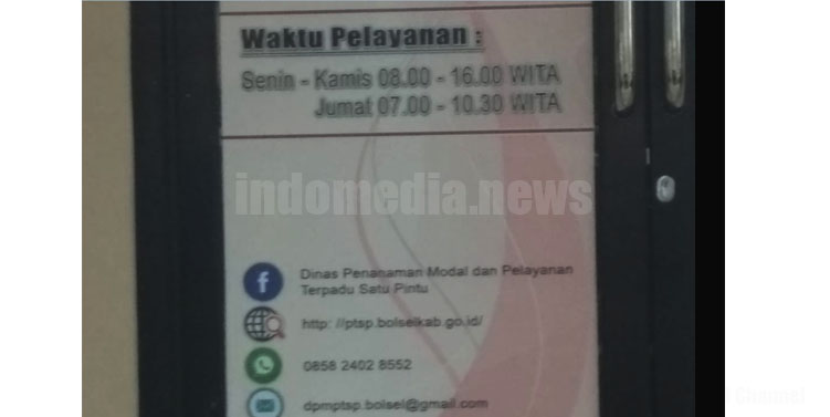 Dikatakannya, bagi masyarakat yang ingin mengurus perizinan bisa menggunakan berbagai fasilitas yakni fanpage Facebook Dinas Penanaman Modan dan Pelayanan Satu Pintu, website http://ptsp.bolselkab.go.id, via whatsapp (call center) 0858-2402-8552 serta email : dpmptsp.bolsel@gmail.com.