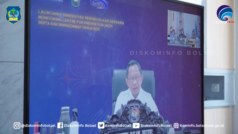Selanjutnya, Mendagri Muh. Tito Karnavian membuka secara resmi Launching Sinergitas Pengelolaan Bersama Monitoring Centre Prevention (MCP).