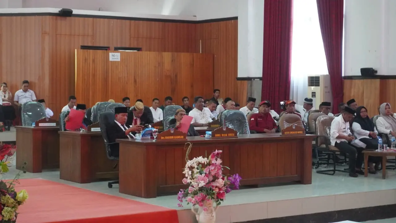 INDO MEDIA – Dewan Perwakilan Rakyat Daerah (DPRD) Kabupaten Bolaang Mongondow Selatan (Bolsel), menggelar Sidang Paripurna Tahap II Penyampaian Rekomendasi LKPJ Kepala Daerah Kabupaten Bolsel Tahun Anggaran 2023 dan Pembicaraan Tingkat II atas Penetapan Ranperda Tentang Perlindungan Perempuan dan Anak, Rabu 8 Mei 2024.