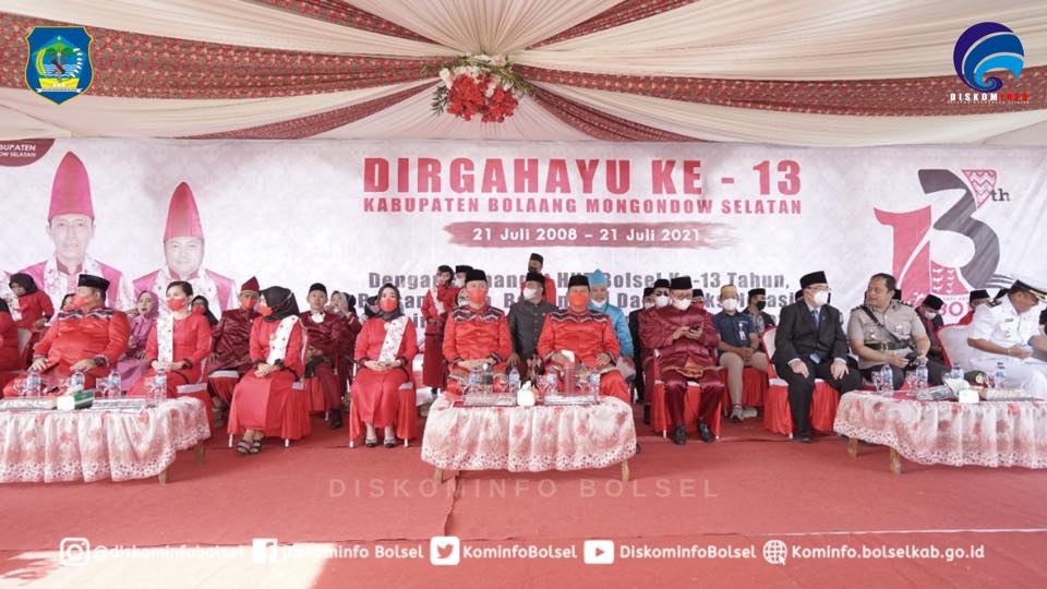 Sementara dalam kegiatan ceremonial yang mengangkat tema “Dengan Semangat Hut Bolsel ke-13 Tahun, Bersatu kita Bersinergi dan Berakselerasi untuk Lahirkan Prestasi di Tengah Pandemi Covid-19”, Bupati mengajak untuk berpartisipasi aktif.