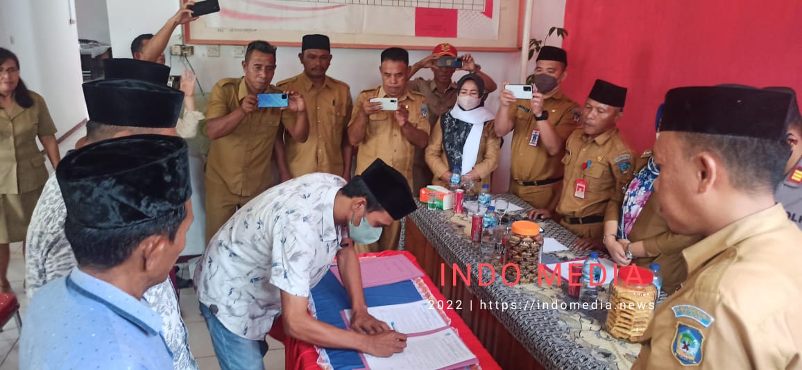 INDO MEDIA – Tiga desa di Kecamatan Pinolosian Tengah (Pinteng), Kabupaten Bolaang Mongondow Selatan (Bolsel), menggelar Deklarasi Damai Pemilihan Sangadi (Pilsang) Tahun 2022, Selasa 10 Mei 2022, bertempat di Kantor Camat Pinteng.