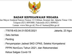 BKN mengeluarkan Surat Penyampaian Jadwal SKD CPNS, Seleksi Kompetensi PPPK Non Guru Tahun 2021, dan Rekomendasi
