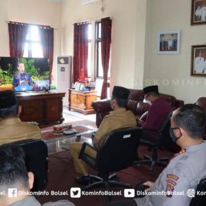 BUPATI H Iskandar Kamaru S Pt bersama Wabup Deddy Abdul Hamid mengikuti kegiatan Rapat Koordinasi (Rakor) Kepala Daerah dan Wakil Kepala Daerah Hasil Pilkada Serentak Tahun 2020, yang digelar secara